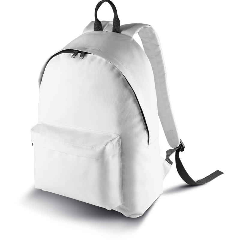 Sac à dos en polyester 600D polyester, poche zippée devant, dos matelassé, bretelles ergonomiques ajustables. Même modèle que KI0130 en version junior.