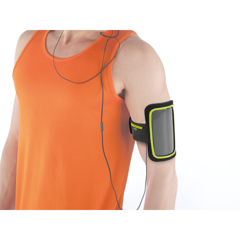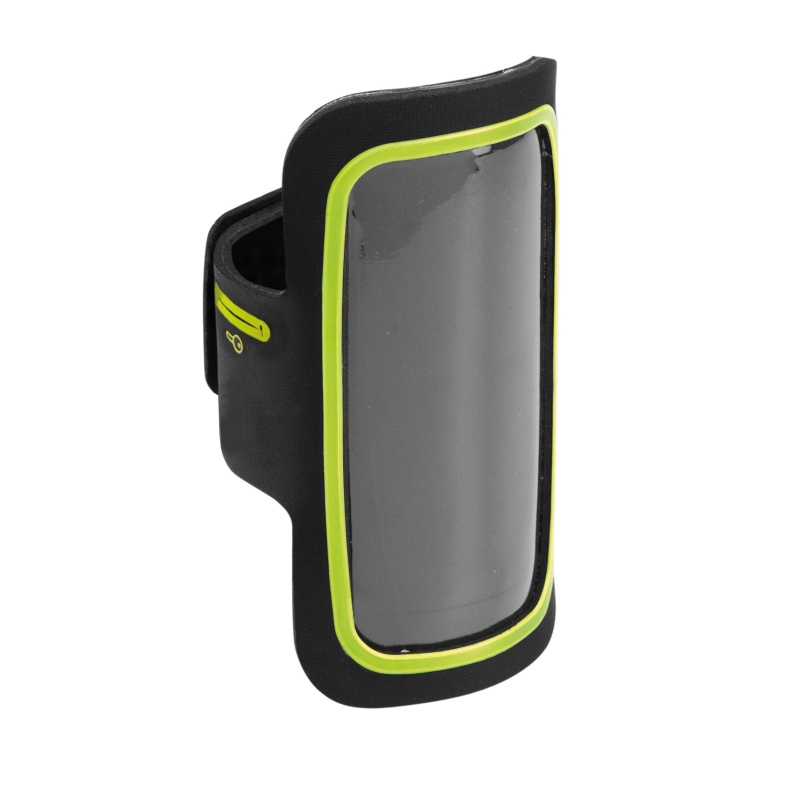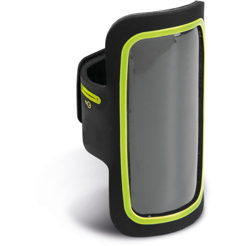 Brassard en polyester néoprène avec contour coloré pour smartphone jusqu'à 4,7", idéal pour toute activité sportive ou de plein air, avec fenêtre permettant l'utilisation de l'écran tactile.