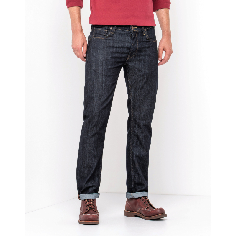 Le jean Daren est le modèle Lee® le plus prisé à coupe ajustée, taille mi-basse, jambes slim et braguette à boutons authentique, parfait en toutes occasions. Coloris Clean Black : 11 Oz. 98,5% coton / 1,5% élasthanne. Denim noir pur extensible avec fils de chaîne et de trame noirs, à la finition épurée et raffinée. Surpiqûres ton sur ton, écusson Lee® en cuir noir. Coloris Rinse : extensible léger et durable 10 Oz. 71% coton / 29% élastomultiester. Denim pur et authentique d'un ton bleu foncé classique, rincé pour la douceur et l'intensité de la couleur, à la finition assortie et épurée. Surpiqûres tabac inspirées des archives de la marque, boutons et rivets en laiton antique, écusson Lee® en cuir pleine fleur marron au dos. Contient des parties non textiles d'origine animale. Coloris Strong Hand 10 Oz. 71% coton / 29% élastomultiester. Denim au xfinitions intenses, délavé et usé sur un bleu profond et classique. Surpiqûres couleur tabac, boutons et rivets en laiton vieilli et écusson Lee® en cuir marron à l'arrière.