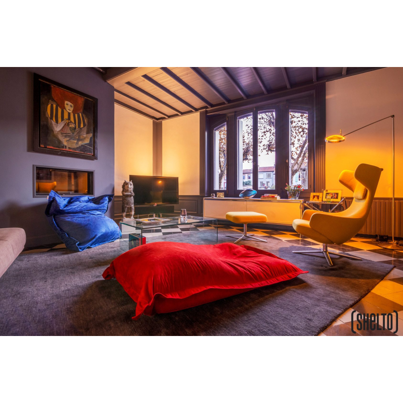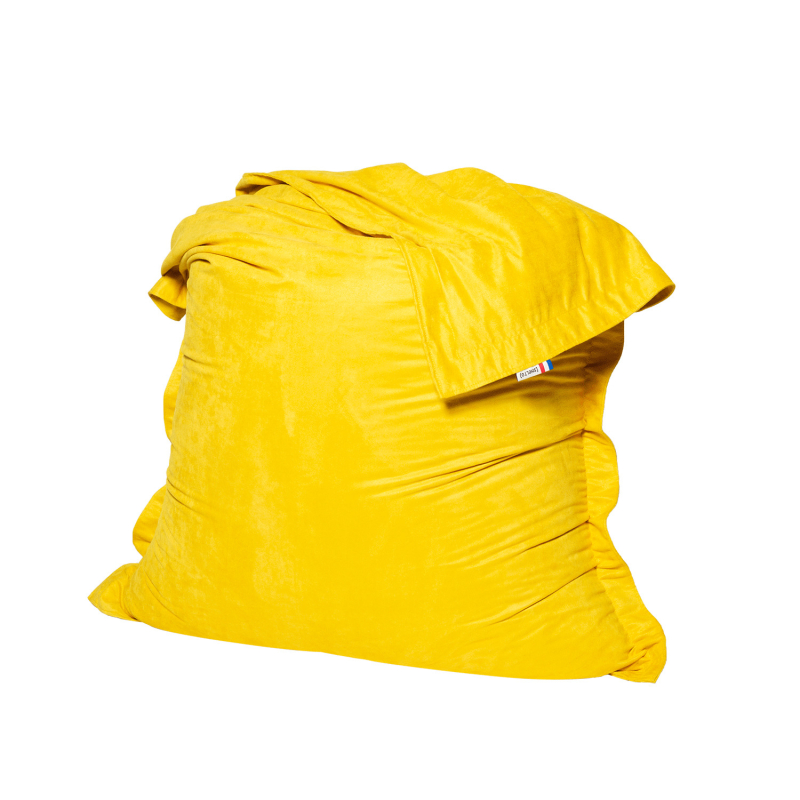 100% polyester. Effet velours. Billes PSE traitées antifeu (quantité 300 L). Pouf déhoussable. Confortable et tissu retro tendance. Utilisable en intérieur. Il est conseillé d'hiverner le produit. Fabriqué en France. Housse lavable à 30°. Produit vendu avec housse à assembler soi-même.